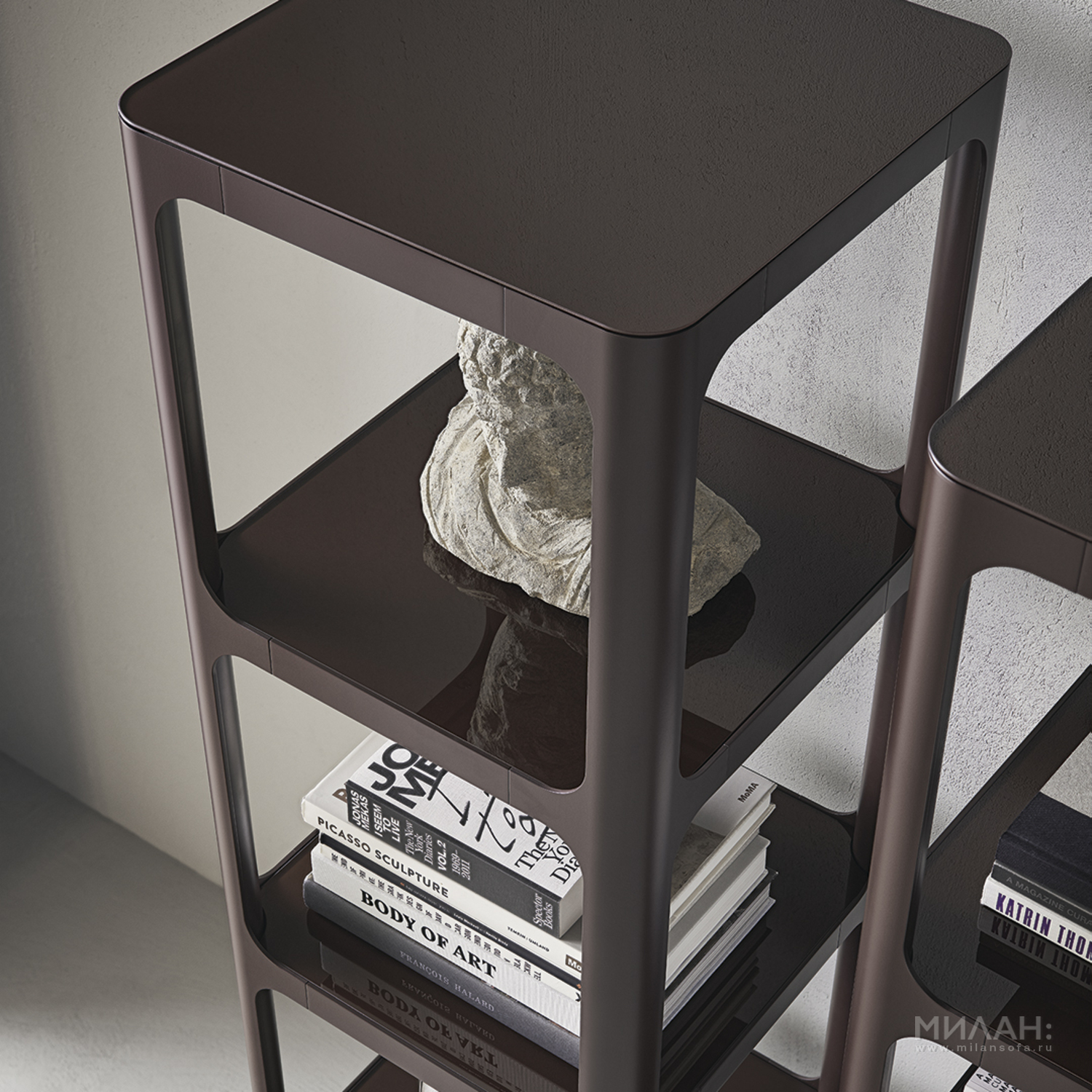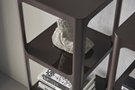 Коллекцию книжных шкафов и стеллажей SIXTY, с их строгими геометрическими линиями, отличает особенный тип скрытых соединений между структурой и полками. Книжный шкаф изготавливается в нескольких размерах и предусматривает возможность сочетания алюминиевой структуры и стеклянных полок с контрастными отделками или, в случае использования окрашенного стекла, с однородной отделкой.
