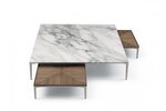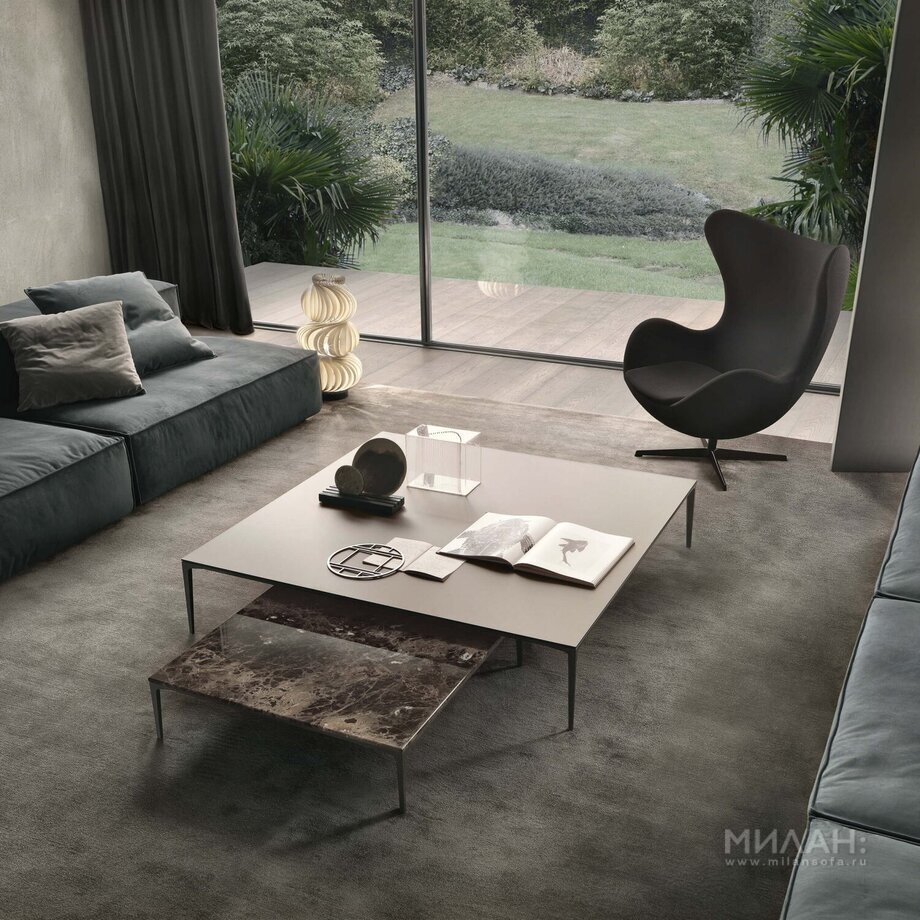 Фабрика Rimadesio предлагает столики TRAY в нескольких вариантах, различной высоты и размеров. Столики отличаются исключительно универсальным дизайном и прекрасно приспосабливаются к нуждам владельца в любом помещении - от гостиной до спальни. Столешницы из окрашенного стекла, мрамора или в отделке шпоном ореха с инкрустацией, великолепно сочетаются с алюминиевой структурой.